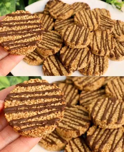 Servir et déguster : Une fois le chocolat pris, vos biscuits croustillants au sésame et à la banane sont prêts à être servis. Dégustez ces gourmandises saines et croustillantes !