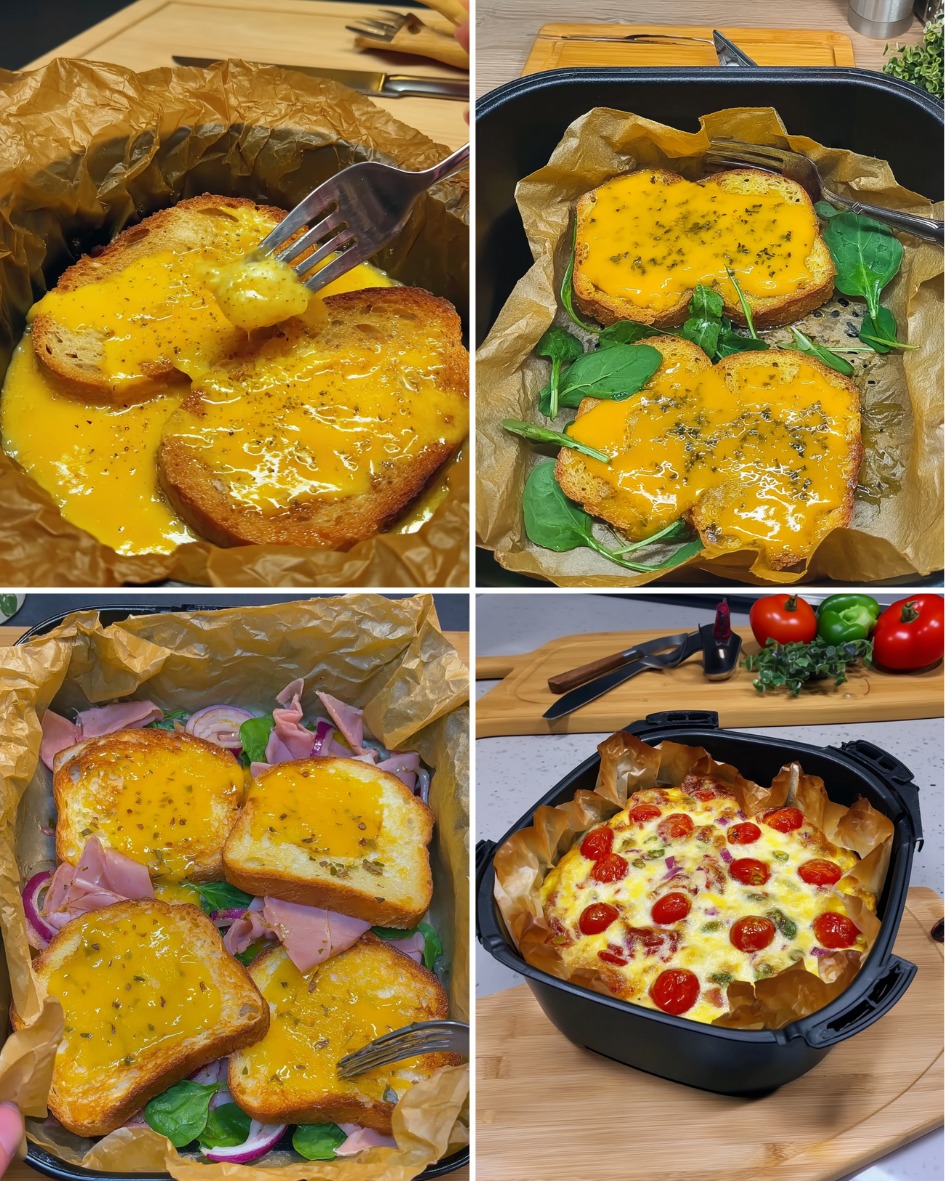 Si vous cherchez une idée de petit-déjeuner rapide, savoureuse et réconfortante, cette recette de breakfast bake au air fryer avec toast fromage et ail est exactement ce qu’il vous faut. Facile à préparer avec des ingrédients simples que vous avez probablement déjà chez vous, elle combine le croustillant du pain grillé, le fondant du fromage et la douceur d’un mélange œufs-lait parfaitement cuit.