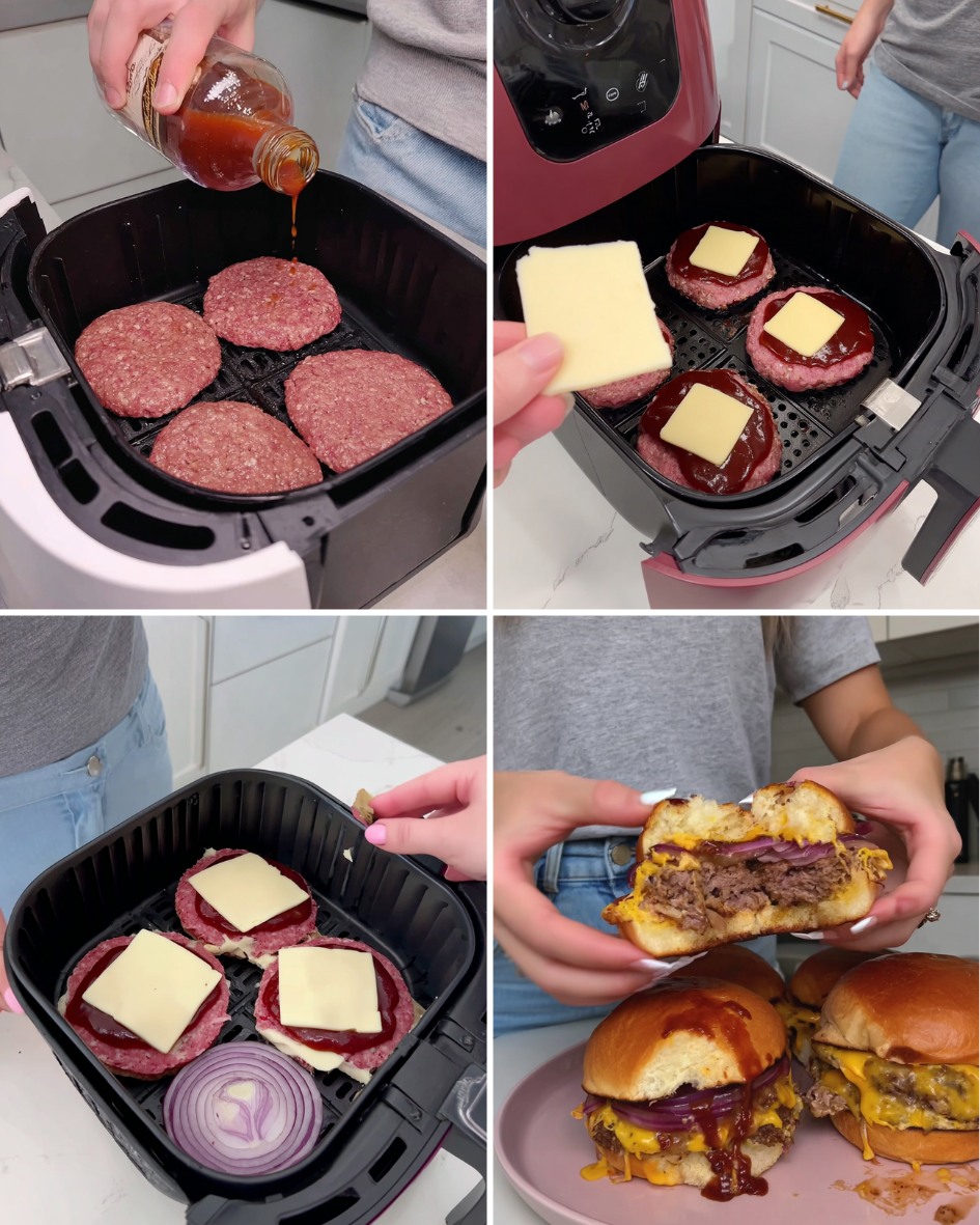 Cheeseburgers BBQ à l’air fryer : juteux à l’intérieur, caramélisés à l’extérieur
